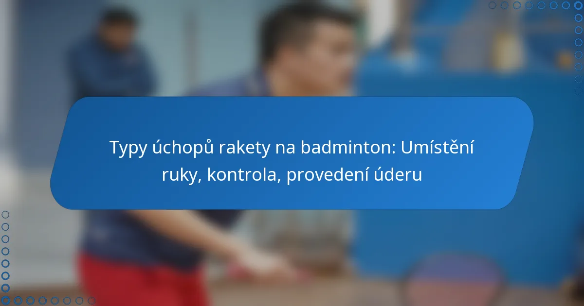 Hlavní typy úchopů rakety při badmintonu zahrnují základní úchop, úchop jako pánev a úchop palcem. Každý úchop má jedinečné charakteristiky, které ovlivňují umístění ruky, kontrolu a provedení úderu, což je činí vhodnými pro různé herní styly a situace.